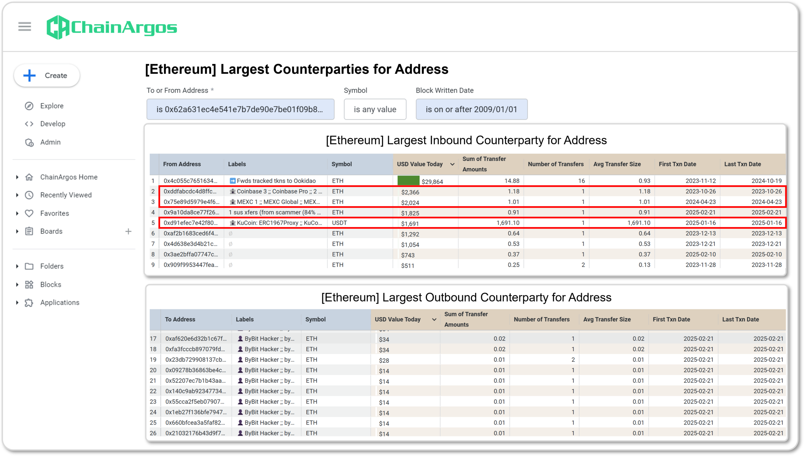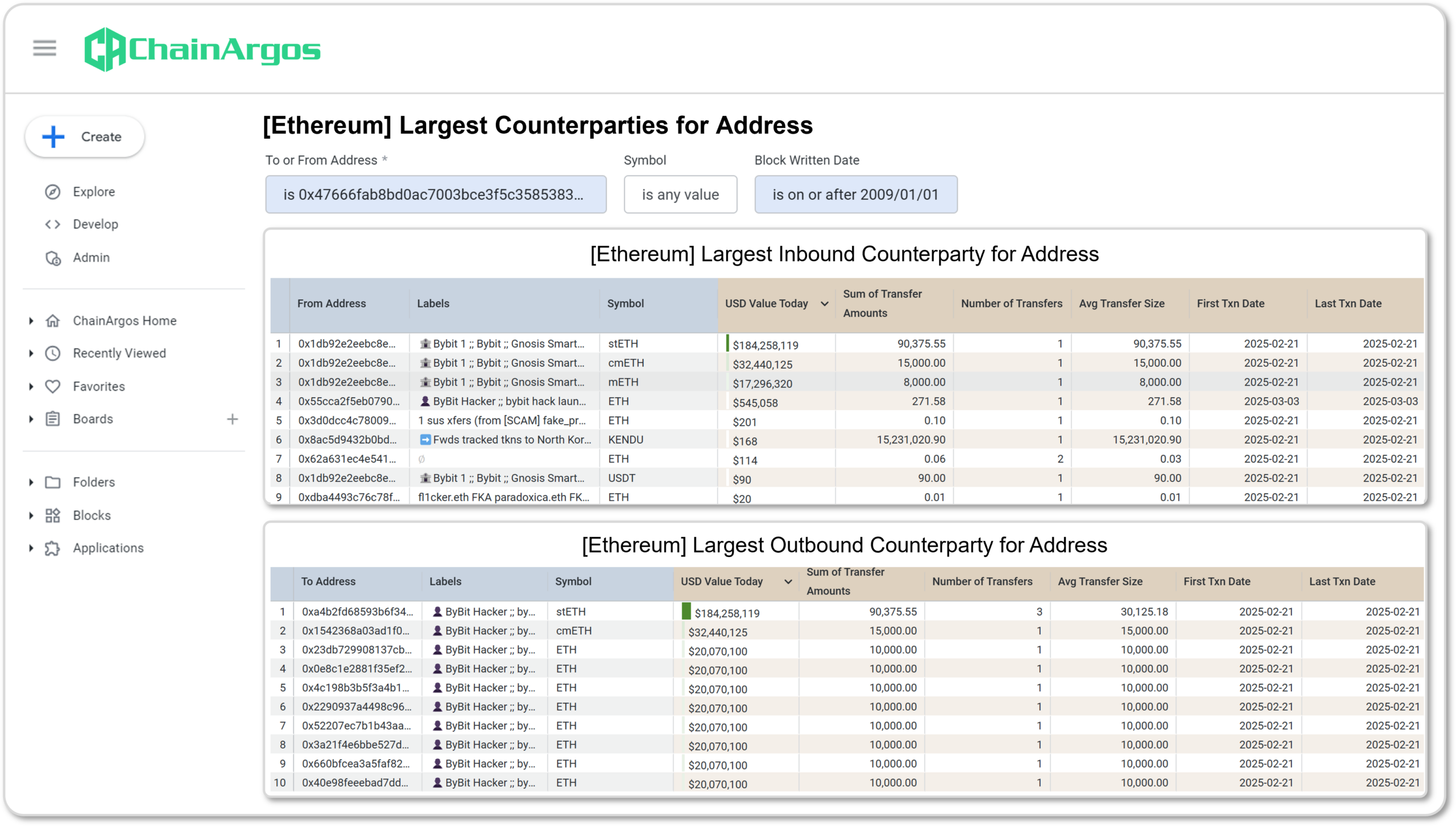 In the next section, we see how ChainArgos and Allium power micro analysis by investigating a Bybit hacker address and demonstrating how access to such data can ensure that constrained investigative resources are directed to the most effective areas.